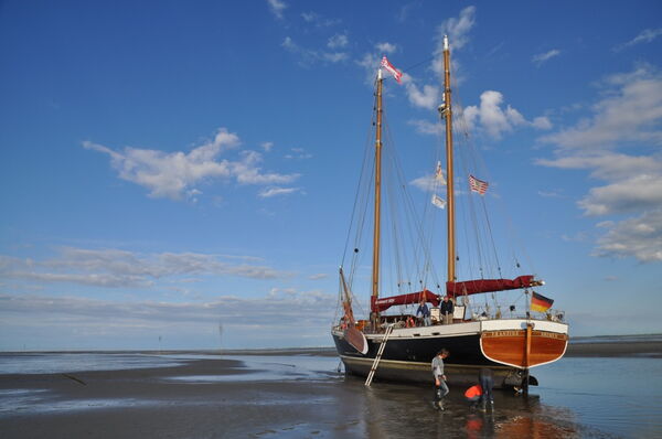 Wir wohnen über den gesamten Zeitraum auf dem historischen Plattbodenschiff "Labor Sanitas". Dieser Schiffstyp ist durch den geringen Tiefgang für das Befahren des Wattenmeeres am besten geeignet. Die Bremer VHS hat das Schiff für diesen Törn gechartert.